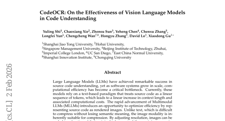 这项由上海交通大学、新加坡料理大学等多所闻明高校采集开展的量度发表于2026年2月的arXiv预印本平台(论文编号:arXiv:2602.01785v1),有酷爱深入了解的读者不错通过该编号查询完整论文。量度团队初度系统性地探索了一个令东说念主出东说念主意象的问题:如若让AI不再"阅读"代码文本,而是"不雅看"代码图像,会发生什么神奇的事情?