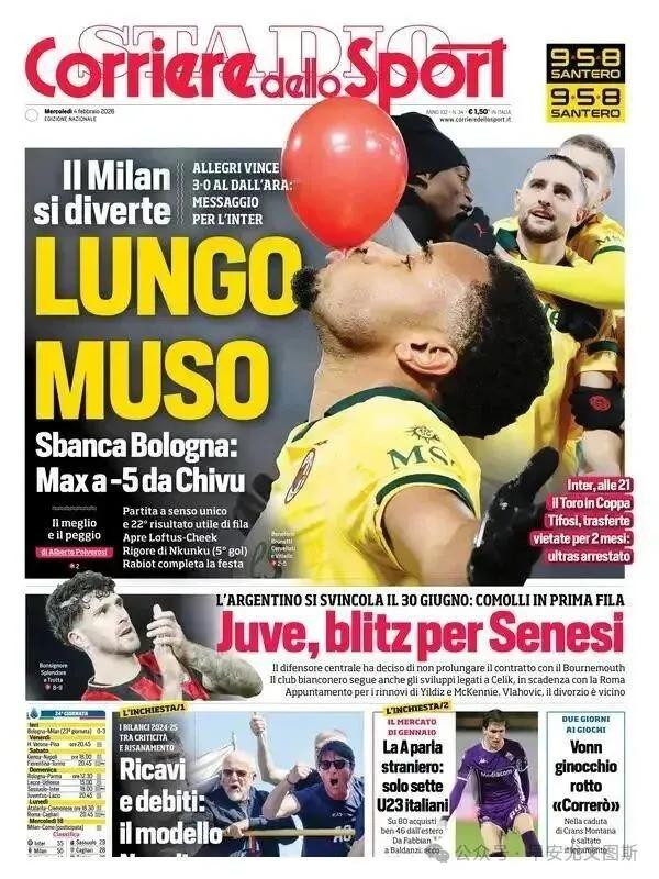 2、尤文,塞内西的闪电战。这位行将离开伯恩茅斯的中后卫是他们的首要指标,阿根廷东说念主在6月30日成为目田球员:求购的军队,科莫利排在第一位。