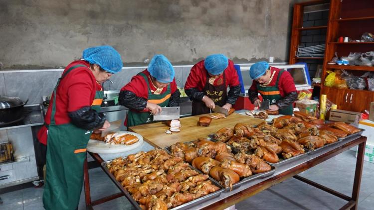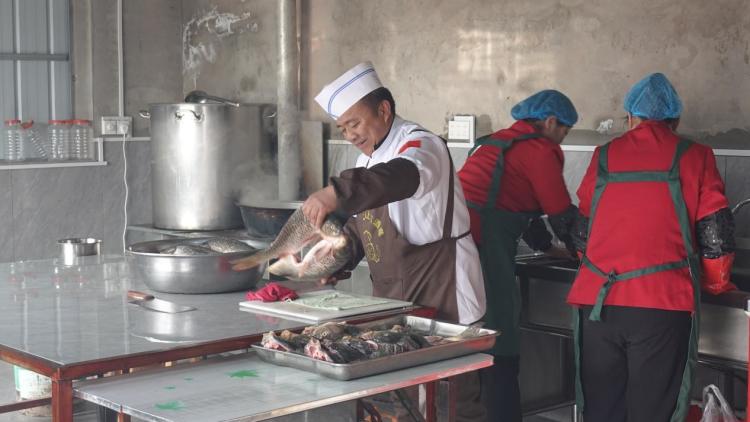 食材加工间里,村民蒋淑芳正在仔细刷猪蹄,她是团队里的老东说念主了。这份使命,她很得志,工资每月多的时代能挣四五千。崇敬切菜的漫玉亦然南屯村东说念主,本年55岁,她底本在城里的餐厅打工,旧年底为了关注生病的哥哥,辞工回了家,也加入了巩大厨的团队。