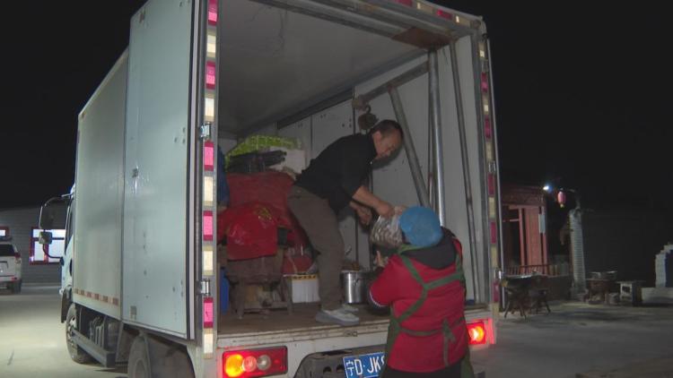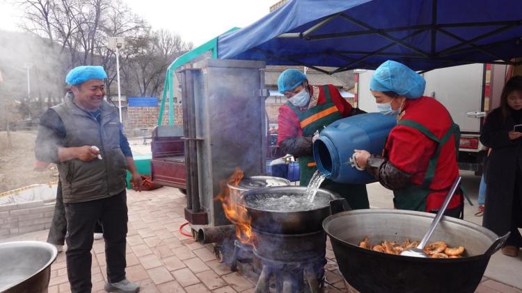 第二天早上七点,辽远的山还笼在清晨前的黑影里,巩耀军和团队麻利地把食材等装上了车。随后,一辆流动餐车,两辆载着职工的小车,鱼贯驶出村口。