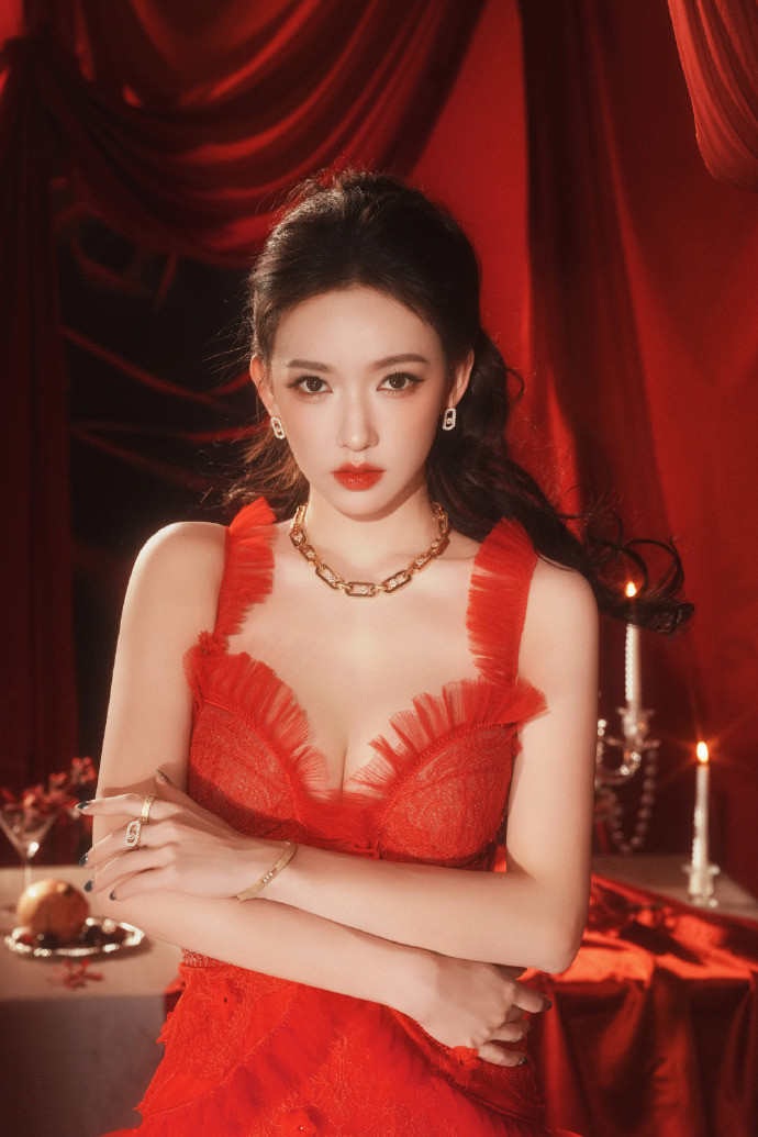 星空app 程潇的强烈如火的红裙, 超让东说念主心爱的