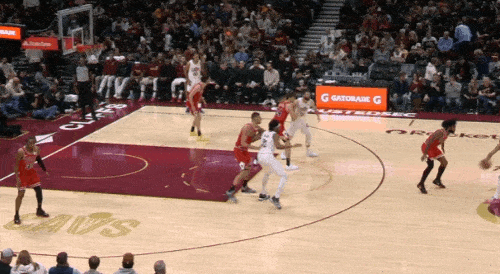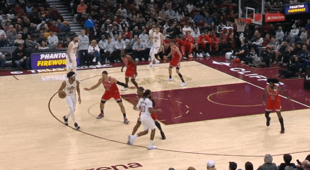 加兰持球过半场后立即和阿伦发动“Drag Screen”和谐,加兰挡拆行进间诱导火器平延误,顺下的阿伦和弱侧沿底线空切的汤姆林参预二打一上风地点。加兰先是佯装出球给顺下阿伦,进一步误导篮下兼顾一防二帕威,随后立即双手鼎力传球,找到弱侧鬼魂区埋伏获取闭幕空档的汤姆林。