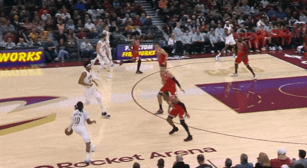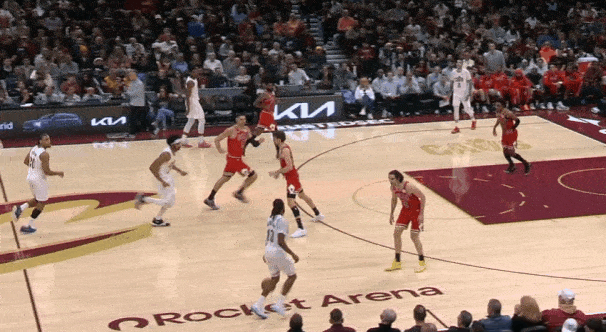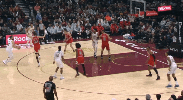 梅开二度:推过半场后立即和阿伦发动边路挡拆和谐,行进间诱导琼斯提前回收篮下协防,于是看着顺下的阿伦——应用目光误导戏耍贬抑——双手枪弹传球精确制导弱侧沿底线空切的大球。