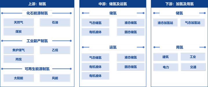 氢能产业链的齐全图景,不错理会为一条从前端制备到末端消费的能源价值链条。上游聚焦于氢气的出产与流畅,通过化石能源重整、工业副产提纯或可再生能源电解等面目制取氢气,再经由高压储氢瓶、液氢槽车或专用管谈运送至消费末端,最终通过加氢站收集完成燃料补给;卑鄙则依托燃料电板等本领,将氢能转变为能源或电力,平素应用于交通出行、工业出产、建筑供能等多元化场景。
