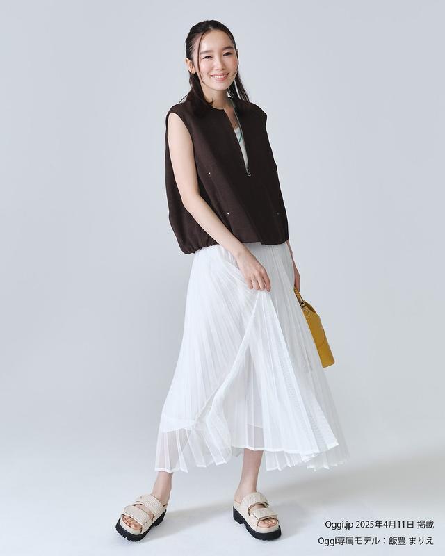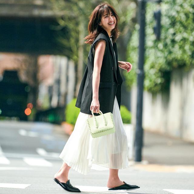 莫得灵感的时刻,不妨看一下日杂穿搭,保证不错让你念念路了了。一条百褶技俩的雪纺半身裙,搭配上玄色无袖西装马甲,和善又干练,薄底技俩的穆勒鞋和马甲同色,打造出“顺手一穿就很好意思”的既视感。