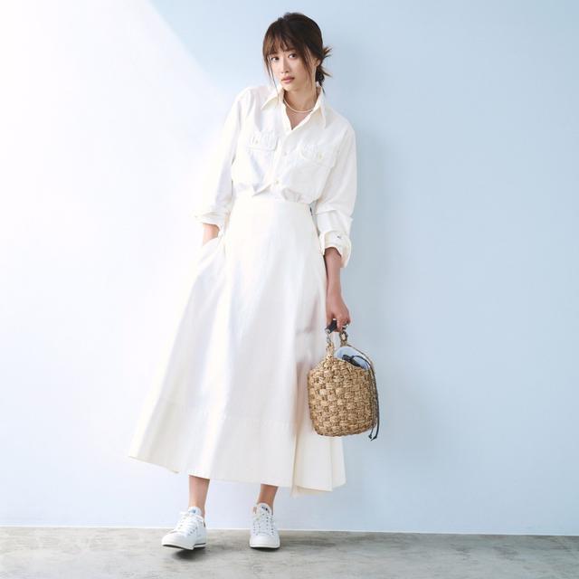 好形体皆是穿出来的,咱们在穿小白裙和平底鞋的时刻,如果想要裁长补短,裙子就要优先选拔高腰款,腰线提到肋骨下方,再搭配一件短上衣,便不错打造出“黄金比例”。
