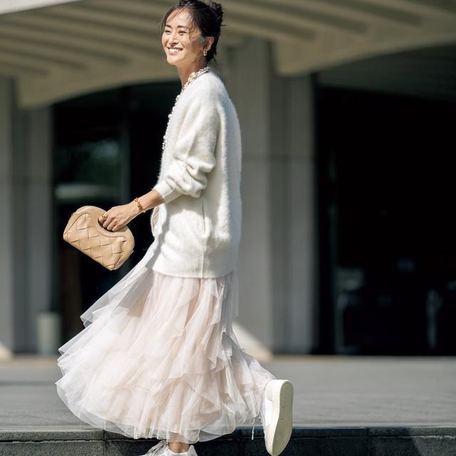 穿的和善有气质,号称女东说念主的“杀手锏”!孑然淡色系的搭配,开脱了空隙感,软糯舒坦的米白色马海毛开衫,搭配超脱灵动的网纱蛋糕长裙,材质之间的均衡,注入了一点高档气质,配双小白鞋就很豪放。