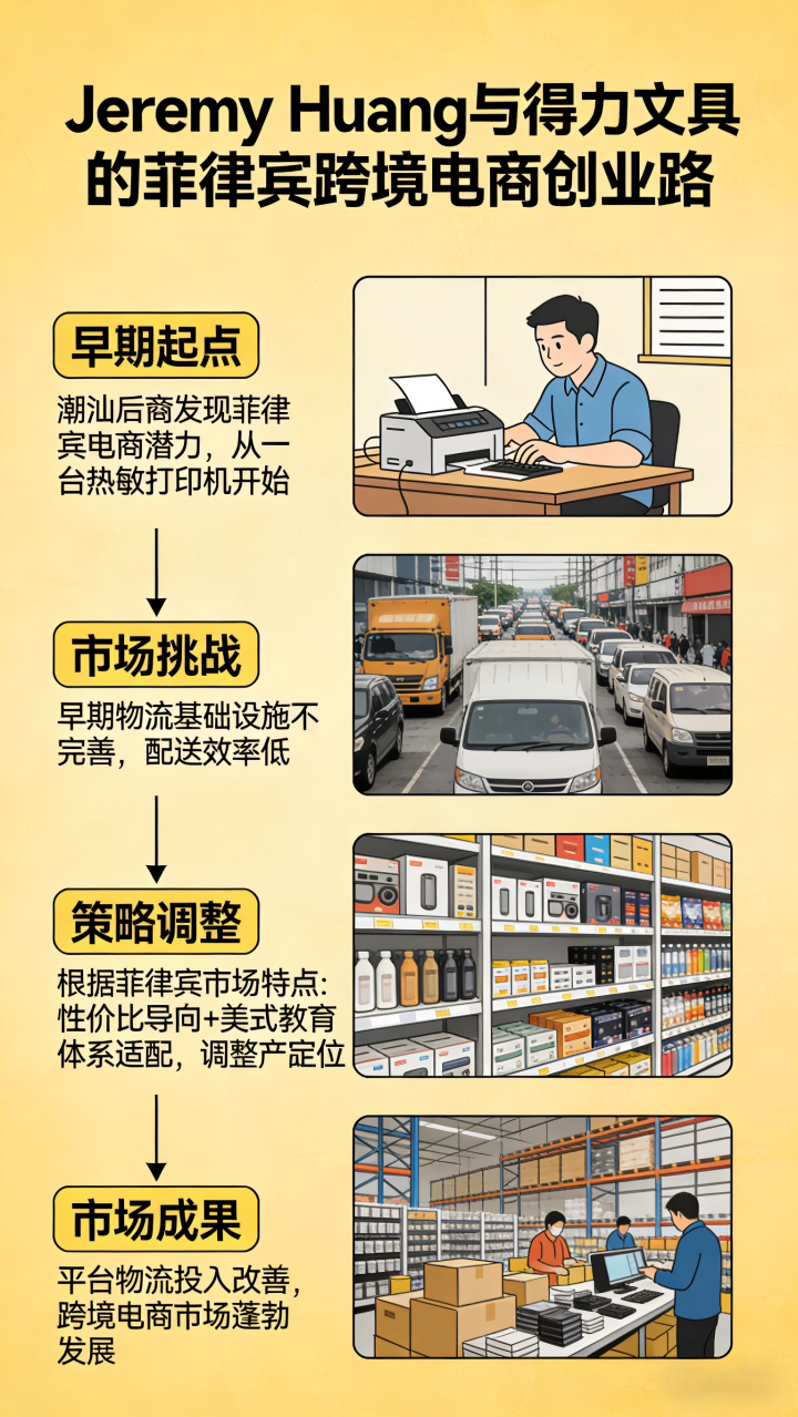 案例一:Jeremy Huang(过劲文具跨境电商创业):Jeremy Huang行为潮汕后裔,看到菲律宾电商市集的后劲,借助电商平台崛起的机遇,从一台热敏打印机运行,与国内文具品牌过劲联接,将文具居品销往菲律宾。早期菲律宾电商市集基础体式不完善,物流等问题凸起,但跟着平台对物流仓储的干涉,情况冉冉改善。他阐明菲律宾市集特色,如滥用者注意性价比、西宾体系偏好意思式等,对居品进行定位和调理,见证了菲律宾跨境电商市集的抖擞发展。