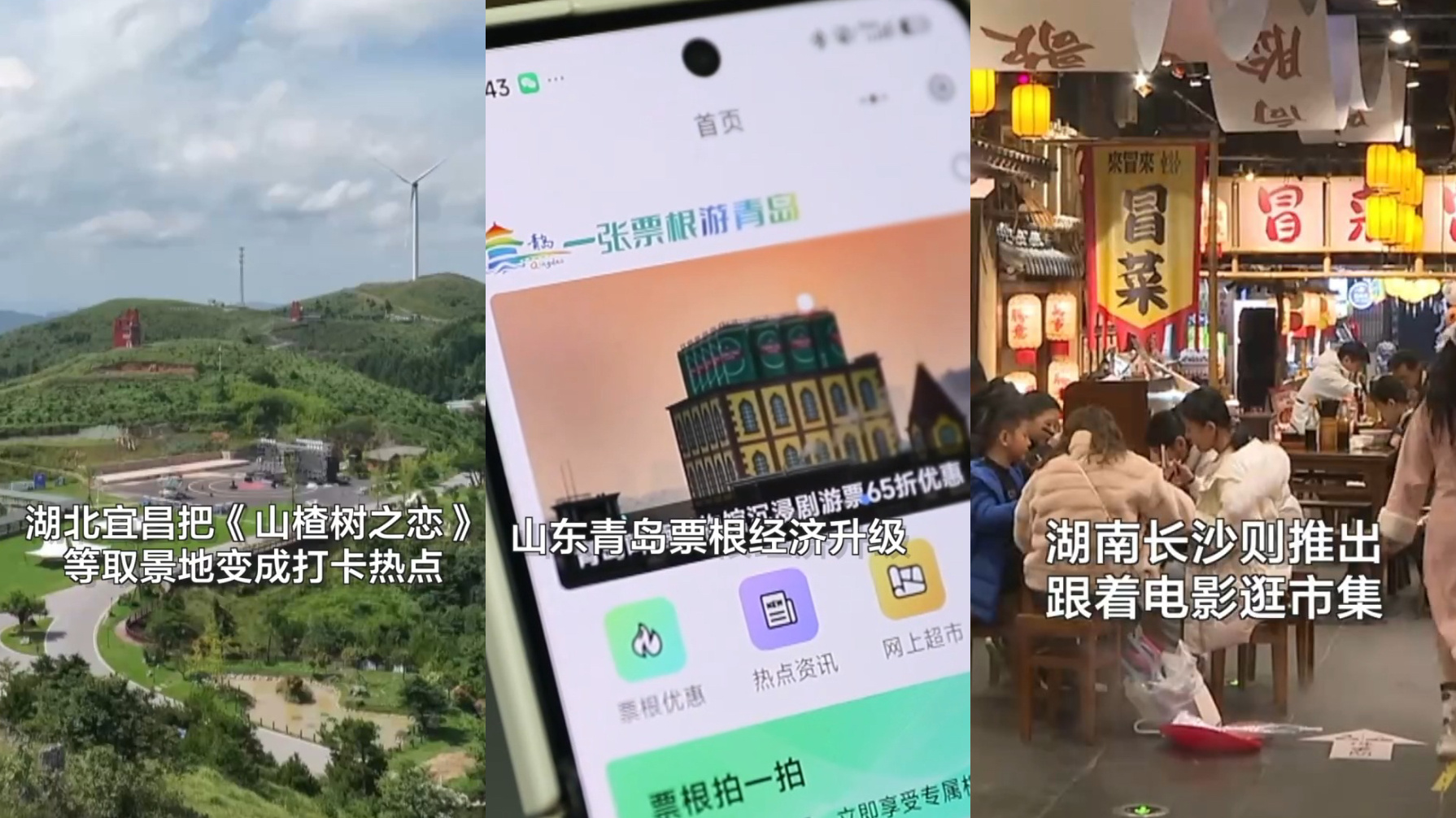 湖南长沙则推出随着电影逛市场,臭豆腐、糖油粑粑、酱板鸭……看完电影就能开启好意思食之旅。