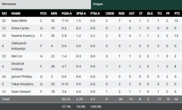 星空app注册 俄勒冈不敌明尼苏达! 四个后卫合砍2分, 只好林葳有得分入账