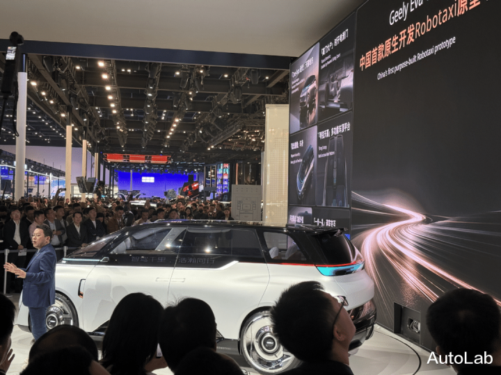 一进展馆你就能看到祥瑞Robotaxi原型车Eva Cab,它的轮廓和之前的“宝宝巴士”极氪MIX很像,不外这次新车的造型野心上用了许多“天圆地点、“琴弦天幕”等东方元素。