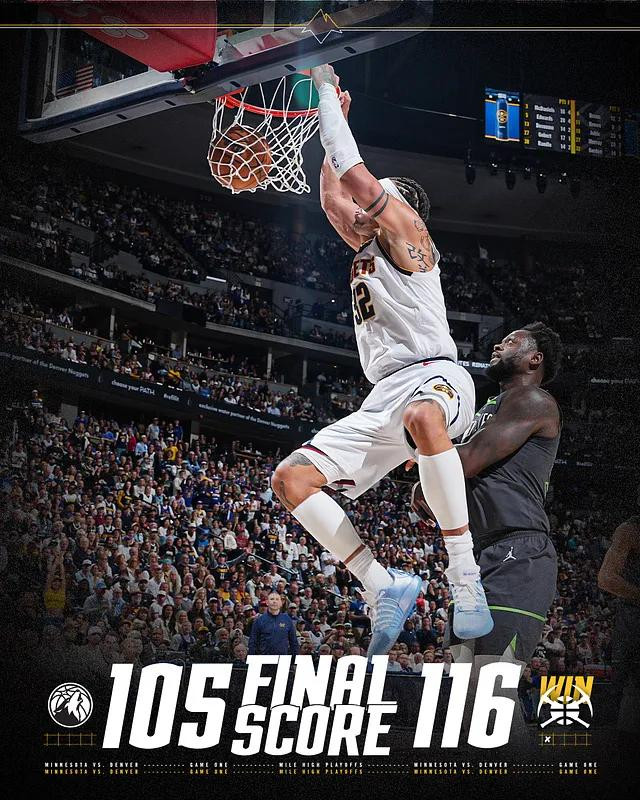 尽管掘金季后赛G1在主场,胜仗以116-105击退丛林狼,可确凿付出了不小代价。