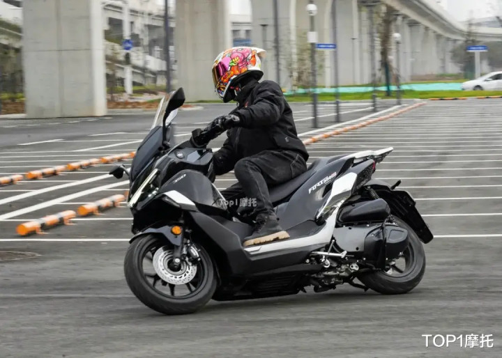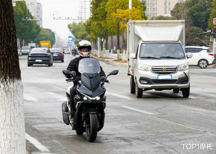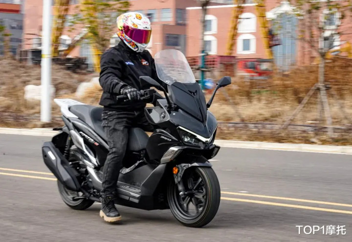 操控方面,鸿350GS的进展可圈可点,这台车的底盘格外塌实,跟其他钱江系的踏板迥然相异,有种欧洲车的沉着感,车架刚性格出门色,可以舒服勇猛的去压弯。通过上图不难发现鸿350GS的倾角比较大,诚然大撑有会影响,然而这个车身姿态和动作无论你是用来摆拍出片,照旧确切带倾角过弯都没问题。另外,原厂配备的CST轮胎,在这个仅有10度的天气下,果然莫得出现打滑的迹象,也能给个大大的好评。