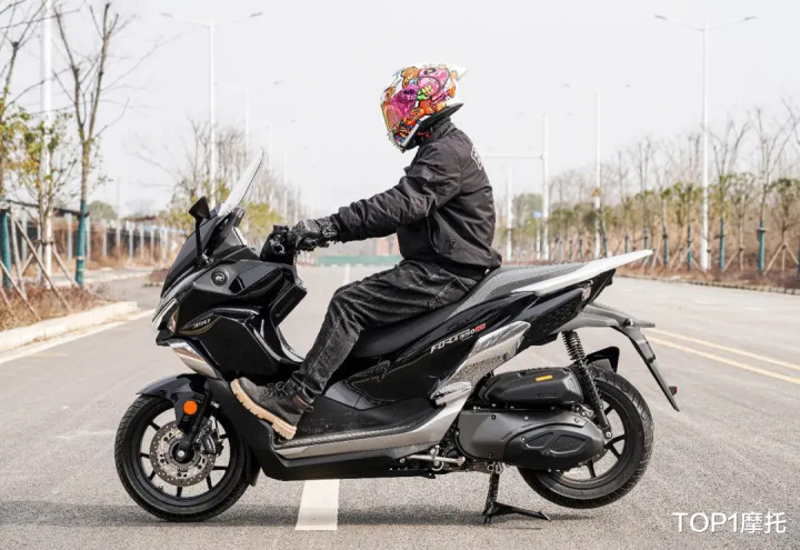 在坐姿方面,靠前少量坐小编大略单脚全脚落地,往后坐少量靠在前坐垫与后坐垫之间的“腰靠”上,腿部空间奢靡,车把角度打死不会遭遇腿部,驾驶位的空间进展可以。