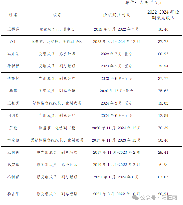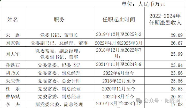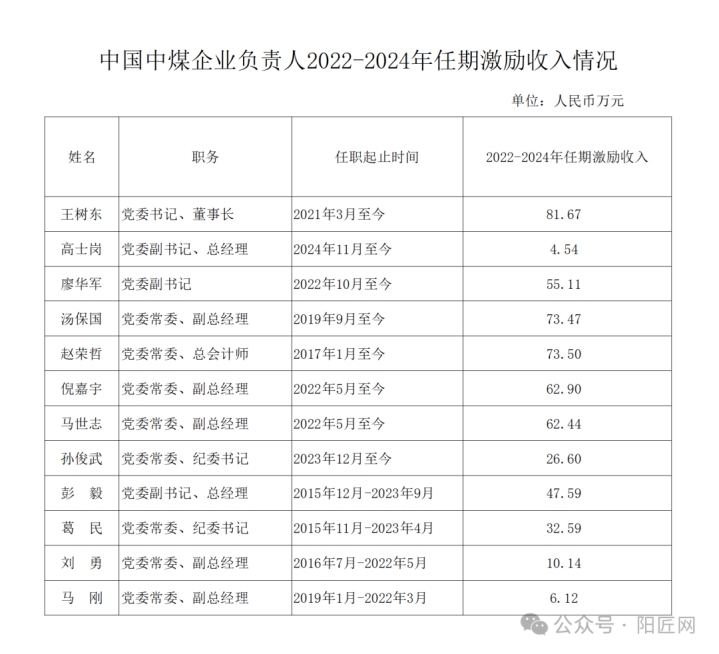中国中煤企业矜重东说念主2022-2024年任期激勉收入情况