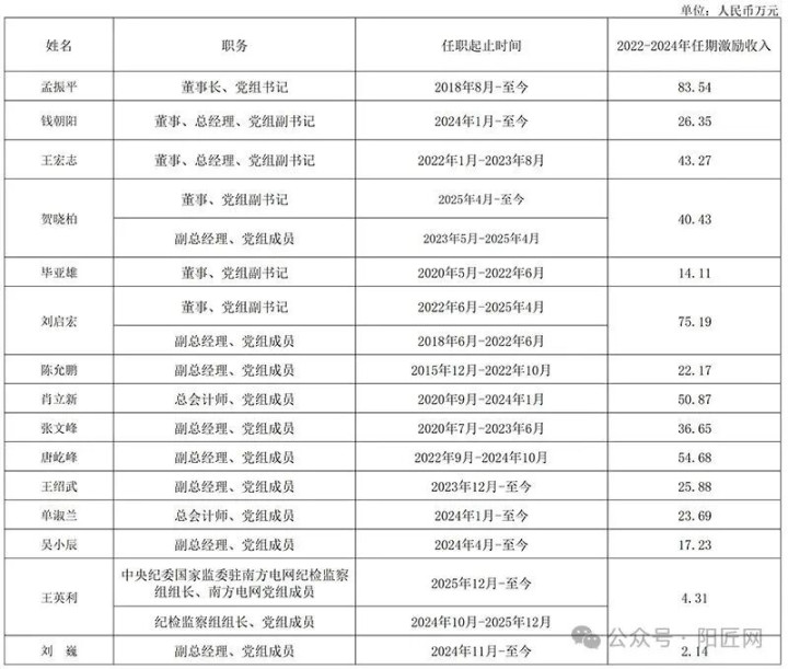 中国南边电网有限包袱公司企业矜重东说念主2022-2024年任期激勉收入情况