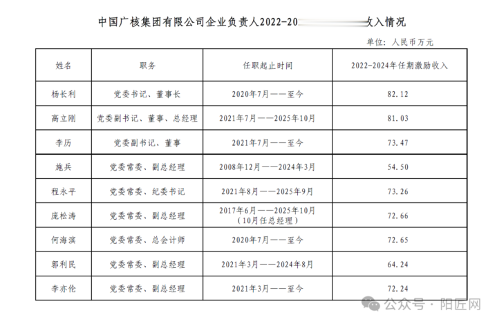 中国广核集团有限公司企业矜重东说念主2022-2024年任期激勉收入情况