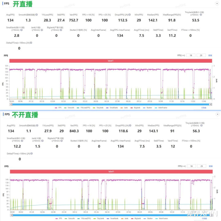 这里需要诠释的是,Perfdog 执出来的帧率之是以莫得 144 满帧,是因为扮装物化回到舆图界面时,游戏会把帧率降到 30 帧,是以平均帧就被拉低了。