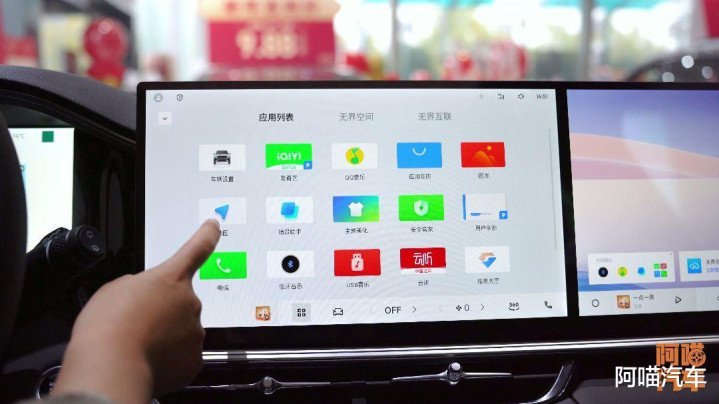 车内遴荐麂皮材质与水晶挡杆搭配,中控区域配备了两块14.6英寸屏幕。