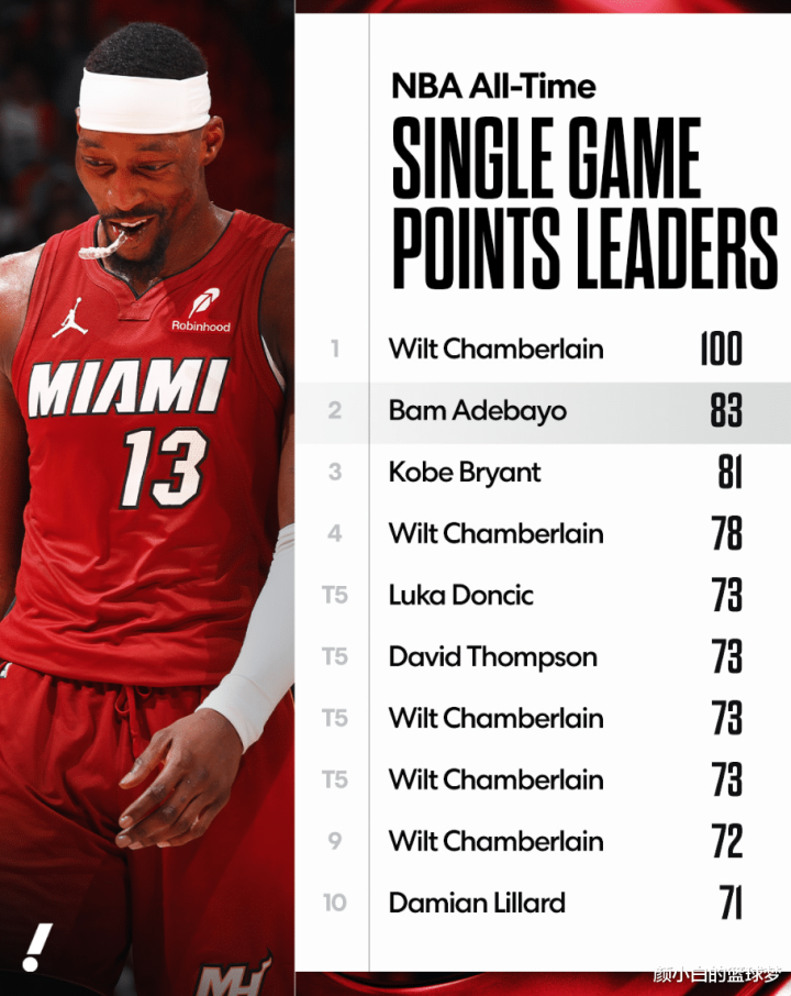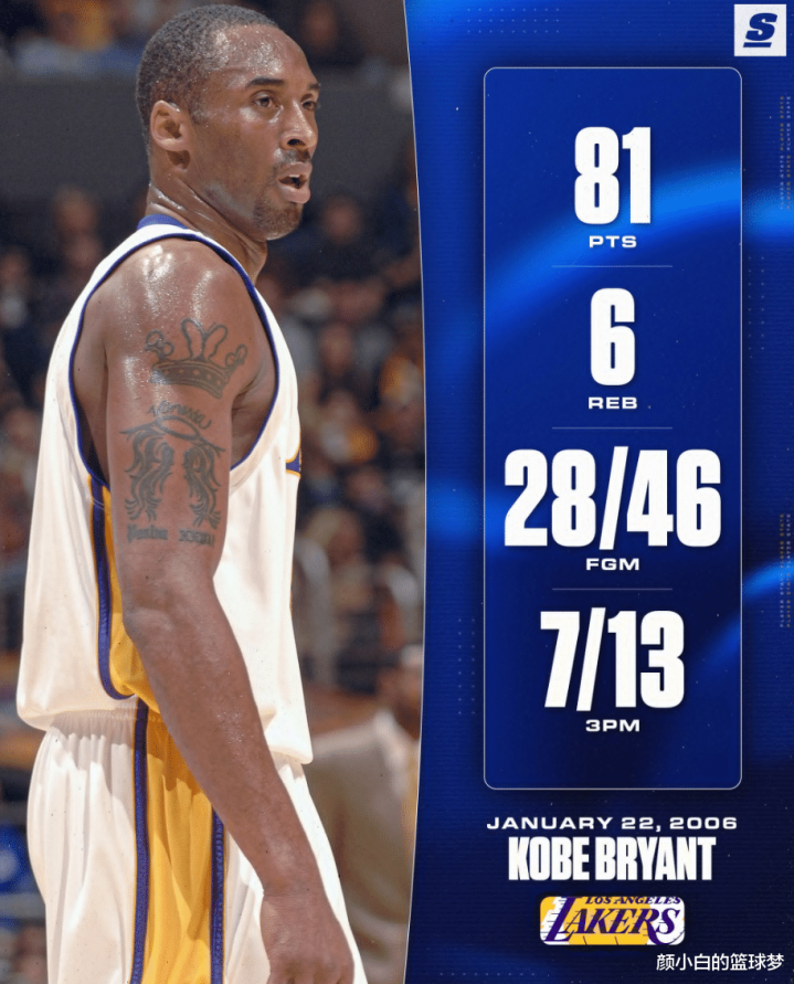 阿德巴约这单场83分如何跟科比的单场81分比呢?虽然不是巨星的球员东谈主生中粗略就独一这么一次的契机,能冲破科比的神迹也算佳话。