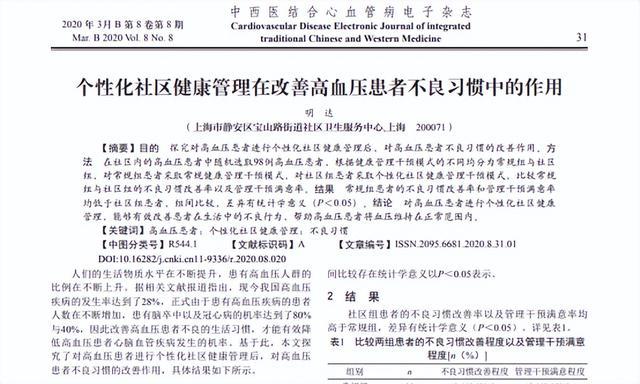 [1]明达.个性化社区健康惩处在改善高血压患者不良民风中的作用[J].中西医纠合心血管病电子杂志,2020