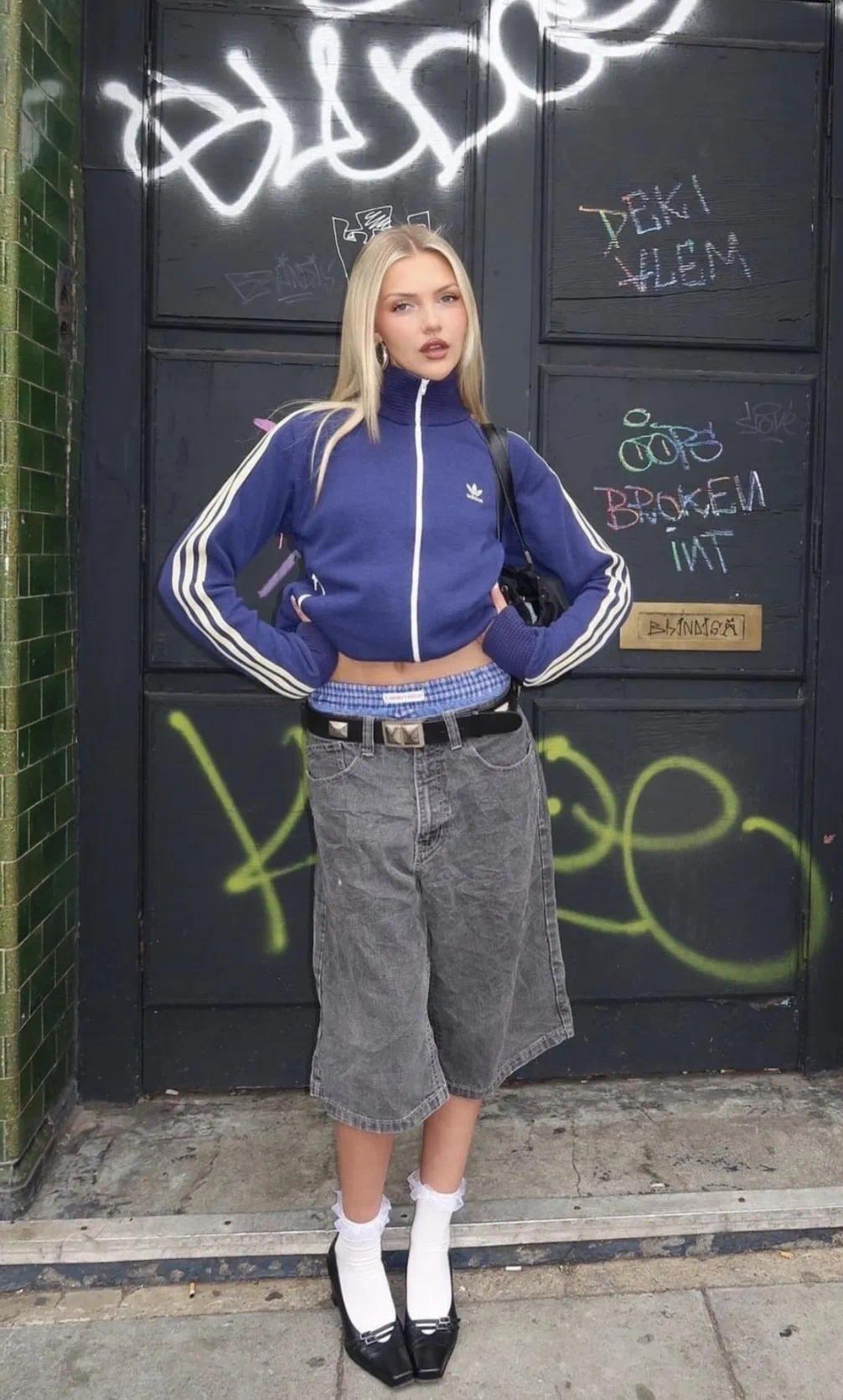 搭阔腿牛仔裤和帆布鞋,慵懒又好意思瞻念。