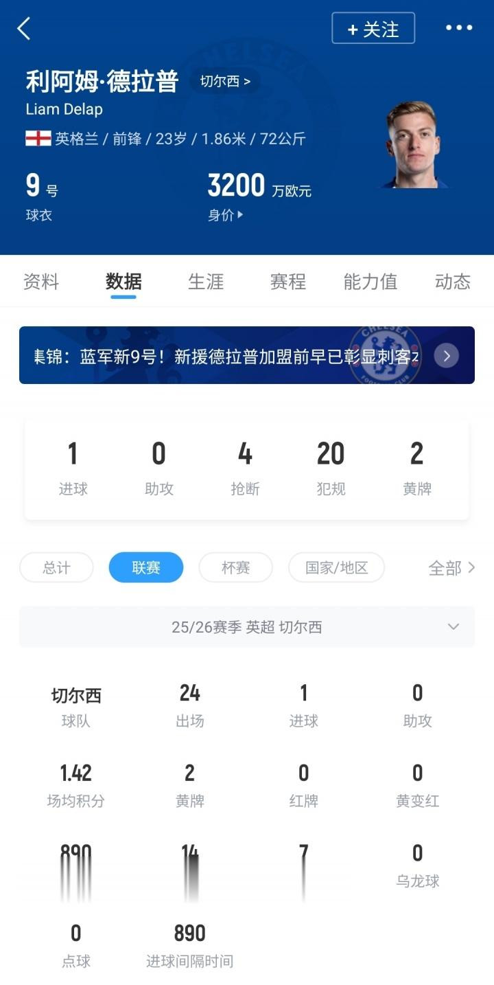 前年夏天切尔西支付3000万镑解约金从伊普斯维奇签下德拉普,星空本赛季23岁的德拉普为切尔西出战35场比赛,孝顺2球3助,其中联赛24场仅1球,当今德回身价3200万欧。